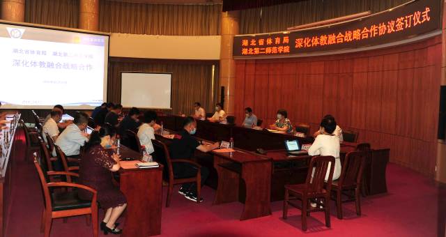 湖北省体育局相关处室负责人,我校相关部门负责人及体育学院班子成员参加签订仪式。(编辑 阳宁 摄影 忠强)