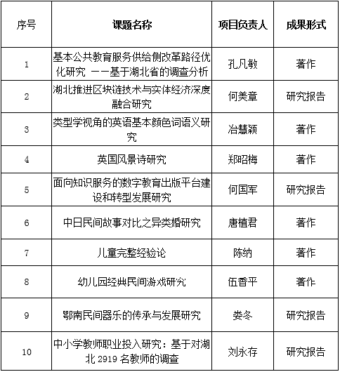 本网讯(通讯员 刘菲)近日,湖北省社会科学界联合会公布了2020年湖北省社科基金一般项目(后期资助项目)拟立项名单,我校10个科研项目获立项资助。立项具体名单如下: