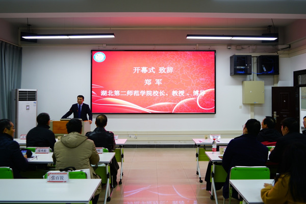 郑军致开幕词,他介绍了我校办学基本情况和计算机学院电子商务专业概况并代表学校对年会召开表示祝贺,对各位领导、专家学者的莅临表示欢迎和感谢。