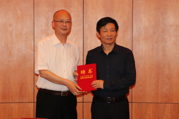 黄颂为王祖浩教授颁发聘书并讲话。他首先代表学校对王教授为我校化生命科学学院科研、教学工作提供的支持与帮助表示感谢,期待王教授的到来能为化学与生命科学学院的发展与建设创造新的契机,助力学院高质量发展。