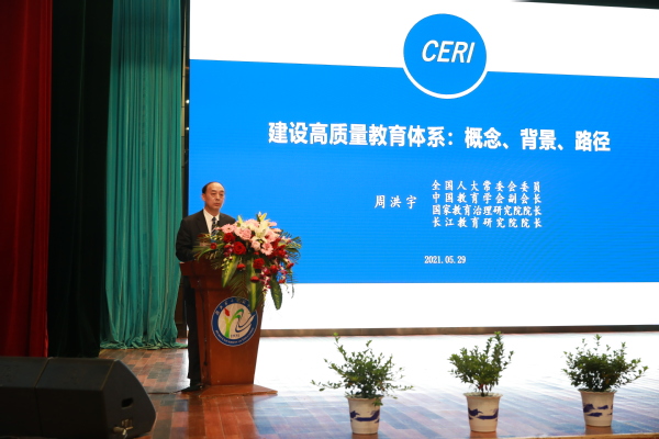 本网讯(融媒体记者 程丽鹃)5月29日—30日,中国·光谷教师教育高峰论坛在我校大礼堂举行。全国人大常委会委员、长江教育研究院院长、国家教育治理研究院院长周洪宇,湖北省教育厅党组成员、省委教育工委委员、副厅长余学敏,武汉东湖新技术开发区党工委委员、管委会副主任张传远,北京师范大学教育学部部长、教师教育研究中心主任朱旭东教授,我校党委书记张国秀、党委副书记许邦官、副校长夏力、胡兴等出席论坛,论坛由我校校长郑军主持。