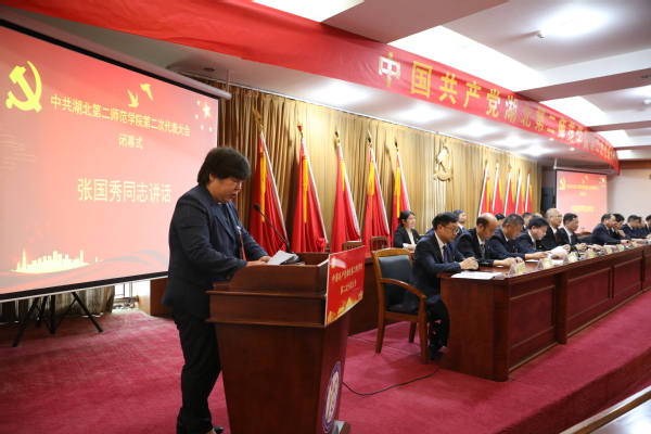 本网讯(融媒体记者 程丽鹃)6月30日上午,中国共产党湖北第二师范学院第二次代表大会在行政楼五号会议室胜利闭幕,闭幕式由大会执行主席刘昕主持。