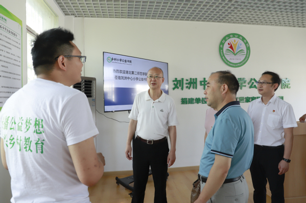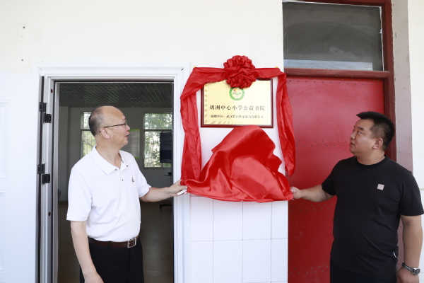 活动前,黄颂对志愿者们表示慰问,详细了解志愿者的工作情况和授课环境;并与捐建单位武汉竹江世家家具有限公司总经理刘含强一同为刘洲中心小学“公益书院”揭牌,听取了乡村小学公益书院项目的情况汇报。