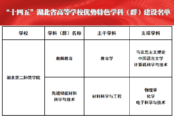 本网讯(通讯员 石晶) 近日,省教育厅公布了“十四五”期间立项建设的省级优势特色学科(群)名单,我校“教师教育”和“先进储能材料科学与技术”两个学科(群)获批省级优势特色学科群。