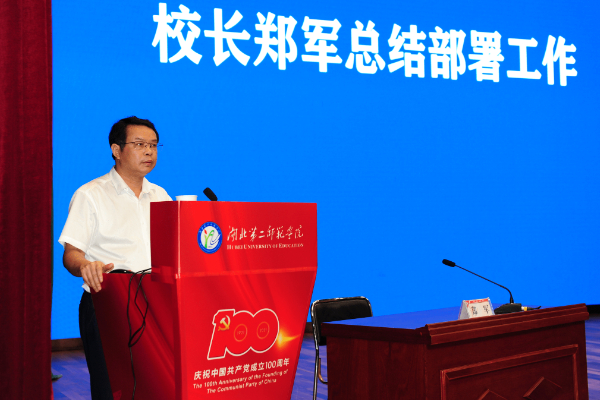 校长郑军对学校上半年工作进行总结,对下半年工作进行部署。他指出,上半年各部门、各学院干成了许多实事,取得了诸多标志性成果,下半年工作要继续扎实推进:一是聚焦“达标申硕”目标,争分夺秒补短板强弱项。二是致力抓实四项全局性工作,为学校发展奠定坚实基础和有力保障。持续做好常态化疫情精准防控、持续推进党史学习教育走深走实、全力配合做好接受巡视工作、大力推进“清廉二师”建设。三是统筹推进9件重点任务,汇聚学校高质量发展动能。即努力冲刺形成一批突出成果、精心筹办教代会、深入推进新时代教育评价改革、建强教师教育综合改革实验区、推进一批重点项目、精心谋划建校90周年庆祝活动、进一步加强毕业生就业工作、抓好财源建设工作,开拓财源保障财力、扎实做好校园安全和综合治理。