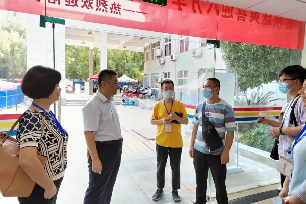 校党委副书记许邦官在建材与材料工程学院迎新点了解新生报到情况