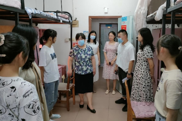 校党委书记张国秀来到外国语学院学生宿舍与2021级新生亲切交谈