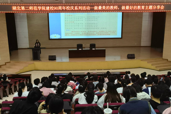 本网讯(融媒体记者 何玮怡 唐晴子 李岩茸)“蚕丝吐尽春未老,烛泪成灰秋更稠”。10月30日下午,学校特地的邀请武汉东湖新技术开发区龙泉小学的校长左军娥老师在我校新图书馆2号报告厅开展了“做最好的教师,做最好的教育”主题分享活动。教育科学学院副院长陈荣、张炜,副书记魏豪,教育科学学院和数学与经济学院两个学院的“优师计划班”全体学生及教育科学学院20级部分学生参与本次讲座学习,陈荣担任此次分享会的主持人。