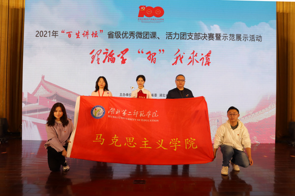 本网讯(通讯员 樊勇 谌鹏程)11月25日下午,湖北省2021年“百生讲坛”优秀微团课、活力团支部决赛暨示范巡讲活动落下帷幕,我校马克思主义学院2019级思想政治教育1班团支部荣获“百生讲坛”省级活力团支部决赛二等奖。