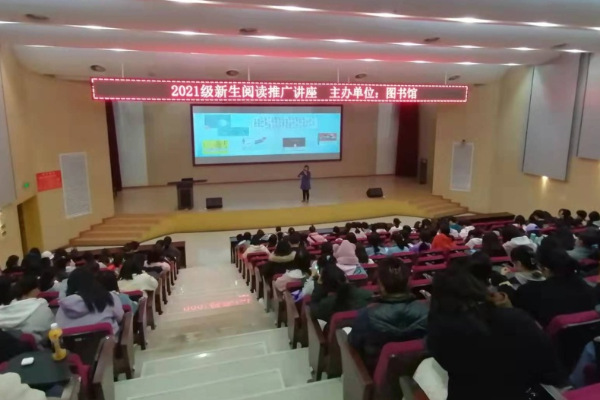 本网讯(通讯员 覃利)11月26日晚,图书馆在二号报告厅举办2021级新生的阅读推广讲座,来自全校13个学院共319名新生阅读爱好者到现场聆听讲座。