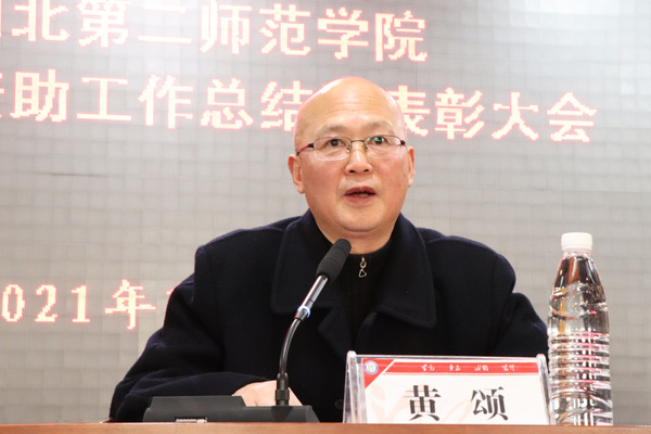 黄颂向受表彰师生表示祝贺,他强调资助育人在构建社会主义和谐社会及实现教育现代化中的重要地位,提出了三点要求:一是协同发展,做好战略部署。二是科学高效,提升育人合力。三是树立典范,加大宣传力度。他希望大家认真贯彻党的十九届六中全会精神,不忘初心、砥砺奋进,共同谱写我校学生资助工作新篇章。
