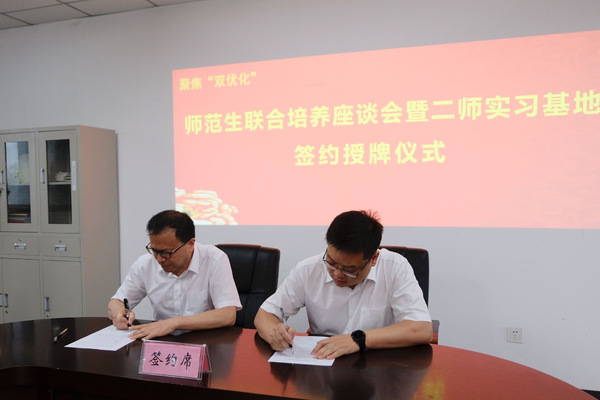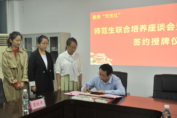 南岳高中余明章校长、建宁高中刘勇红校长均表示,“湖北二师培养的师范生很优秀,师范基础技能很扎实,能快速的适应岗位站稳讲台,校长推介的52份简历很及时,很实效,形式也很新颖。”在师范生联合培养洽谈环节,大家就师范生联合培养,开展“带编制、送岗位、进校园”招聘活动,促进大学生实习实践及职业指导等方面进行了深入地交流并签署合作协议,为教育实习基地授牌。在校友座谈过程中,校长同参会校友代表们就校友发展情况、人才培养建议、母校发展建议等方面进行了热烈的交流。校友们表示,校长能在他们毕业多年赴现工作单位看望他们、关心他们成长,内心非常感激。