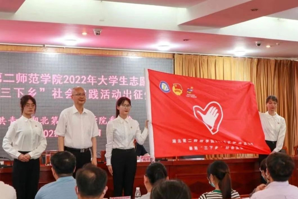 黄颂为暑期“三下乡”社会实践活动授旗。