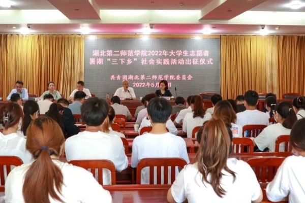 现场播放了2021年大学生志愿者暑期“三下乡”社会实践活动成果视频。工作人员宣读了《2022年大学生志愿者暑期“三下乡”社会实践活动团队安全守则》。校团委创新实践部指导老师张静汇报了湖北第二师范学院2022年大学生志愿者暑期“三下乡”社会实践活动工作情况;宣读了《2022年大学生志愿者暑期“三下乡”社会实践活动校级重点立项团队名单》。校级重点立项团队“快乐童心志愿服务队”指导老师刘文君、“麦田守望者志愿服务队”队长熊倩分别发言。