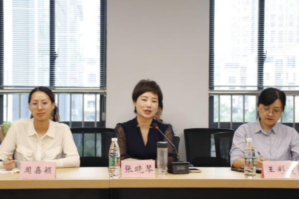 交流会上,张晓琴介绍了光谷第十八小学教师团队、班级情况以及学校发展目标。