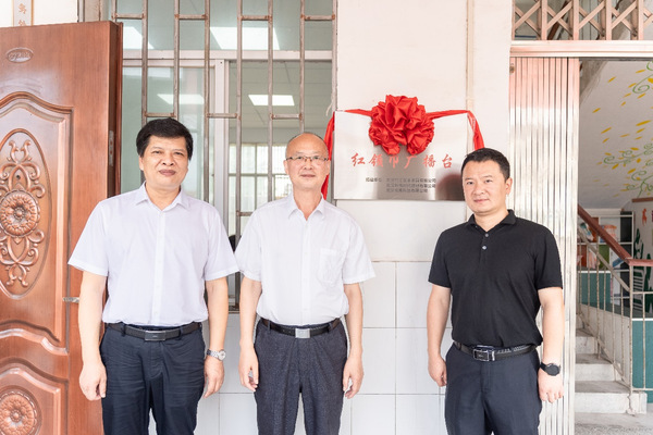黄颂、董波、张济清共同为红领巾广播台揭牌。汉川市沉湖镇中心初中校长赵文杰致欢迎辞。文敏为刘洲小学校长段海涛授“乡村小学公益书院联盟学校”牌。