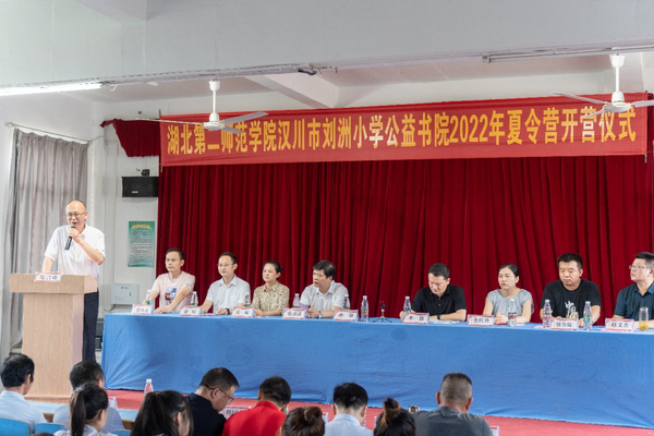 本网讯(通讯员 陈宇洁 杨钰康)7月6日上午,湖北第二师范学院、汉川市刘洲小学公益书院2022年夏令营正式开营。我校副校长黄颂出席开营仪式并讲话。汉川市教育局党组成员张济清,沉湖镇党委书记董波、副书记金红丹,沉湖镇中心初中校长赵文杰,我校校团委书记文敏、新闻与传播学院党总支书记徐晓,爱心企业家代表及夏令营全体志愿者参加活动。新闻与传播学院党总支副书记邱媛主持仪式。