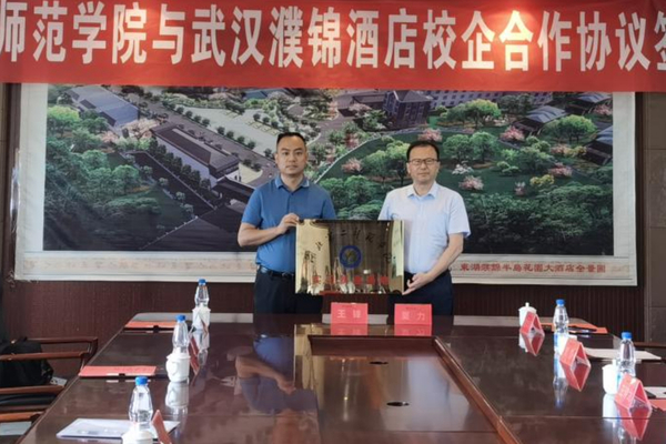 夏力与王锋分别代表校企双方签署校企合作协议,并为“湖北第二师范学院实习就业基地”授牌。
