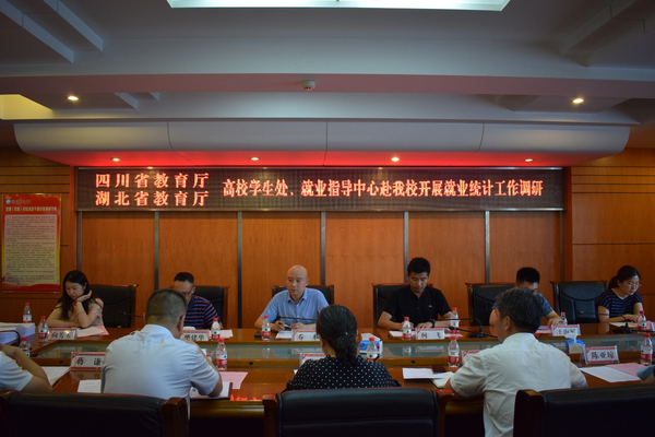 本网讯(通讯员 李晓峰)7月13日下午,四川省高校学生信息咨询与就业指导中心副主任乔木、湖北省高校毕业生就业指导服务中心副主任张丽萍等一行来我校考察调研。我校党委常委周忠,招生就业处处长刘儒国、副处长蒋谦参加座谈,并交流就业工作经验。