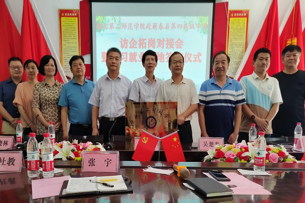本网讯(通讯员 张宇 雷晓林)7月26日,校党委常委周忠带领化学与生命科学学院相关人员赴蕲春县李时珍中学、蕲春四中开展访企拓岗促就业活动。此次活动由蕲春县教育局统筹组织,蕲春县教育局党组副书记李泓主持了两场交流会及教育实习就业基地签约仪式。蕲春县李时珍中学书记校长操时闻、副书记刘水清,蕲春四中书记校长吴楚光、副书记占志勇等学校班子成员参加座谈。