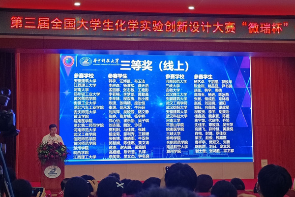 本网讯(通讯员 缪光靖 段宜嘉)7月21日上午,由中国化学会和教育部高等学校国家级实验教学示范中心联席会主办的2022年第三届全国大学生化学实验创新设计大赛“微瑞杯”华中赛区竞赛在华中科技大学举行。在孙建明、张蕾老师的悉心指导下,我校化学与生命科学学院缪光靖、段宜嘉、刘愫涵等三位同学的作品《红旗为什么那样红》入围华中赛区现场赛并荣获二等奖;刘志强、魏汝、沙琼等三位同学的作品《以箬叶“碳”究Cr(Ⅲ)和Cr(Ⅵ)的检测与吸附》荣获三等奖。