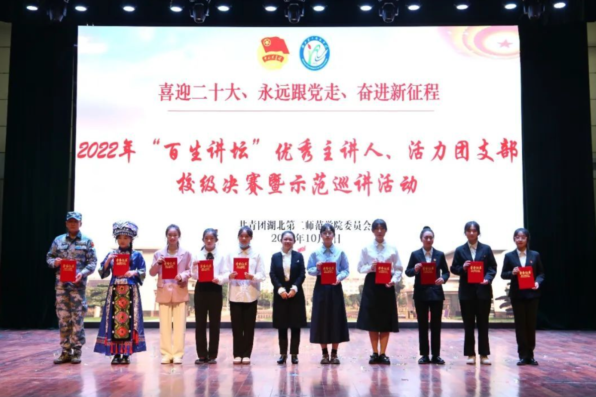 2022年来,学校团委以“理论学习我来讲—喜迎二十大、永远跟党走、奋进新征程”为主题,持续打造“百生讲坛”活动品牌,进一步提升团的组织力、引领力和服务力,团结带领广大青年建功“十四五”、奋进新征程,以优异的成绩、昂扬的姿态迎接党的二十大胜利召开。