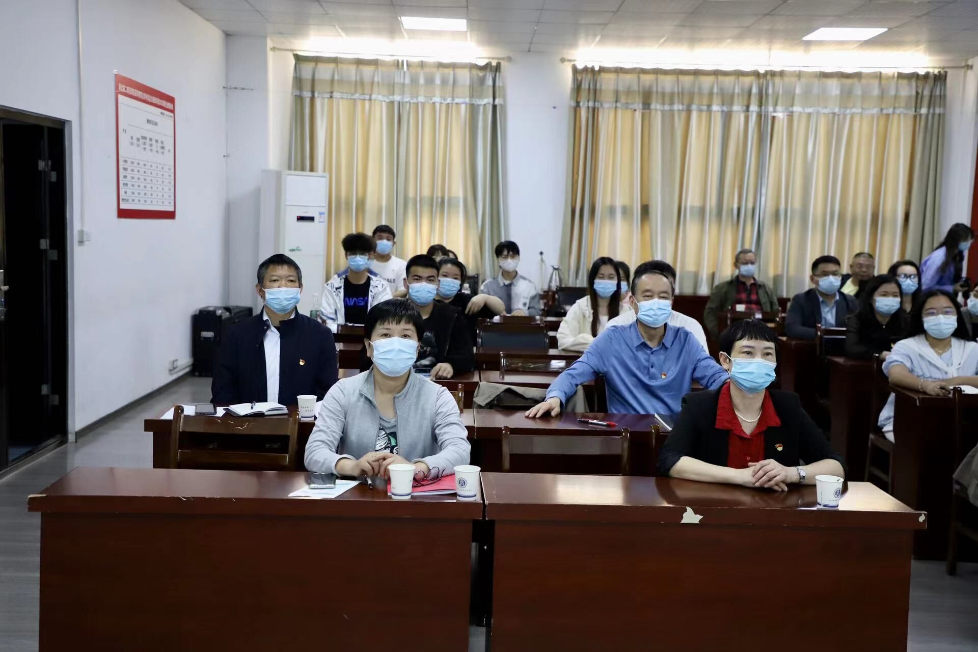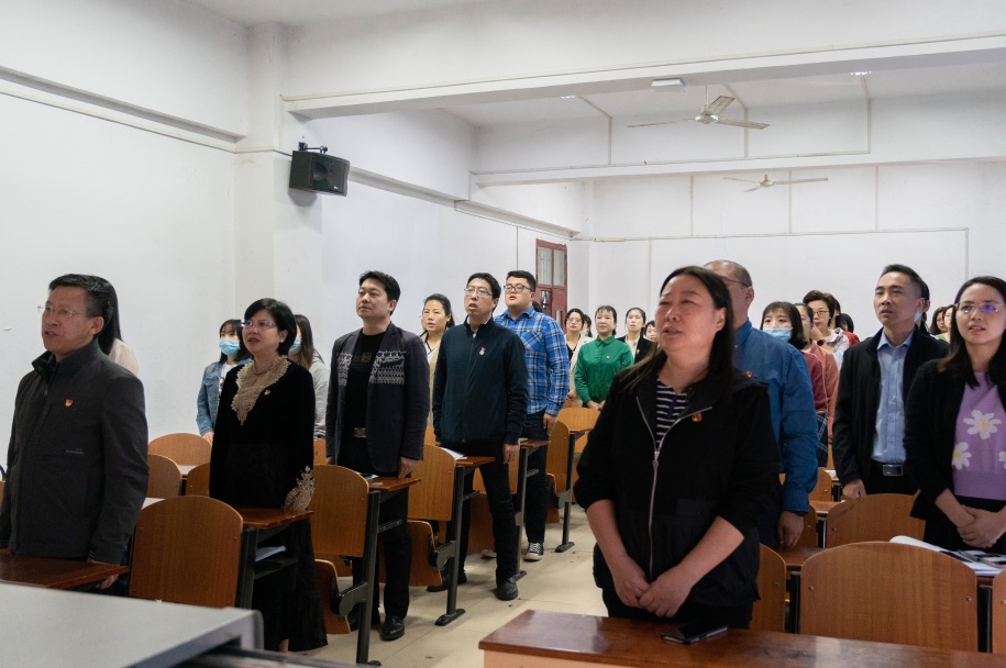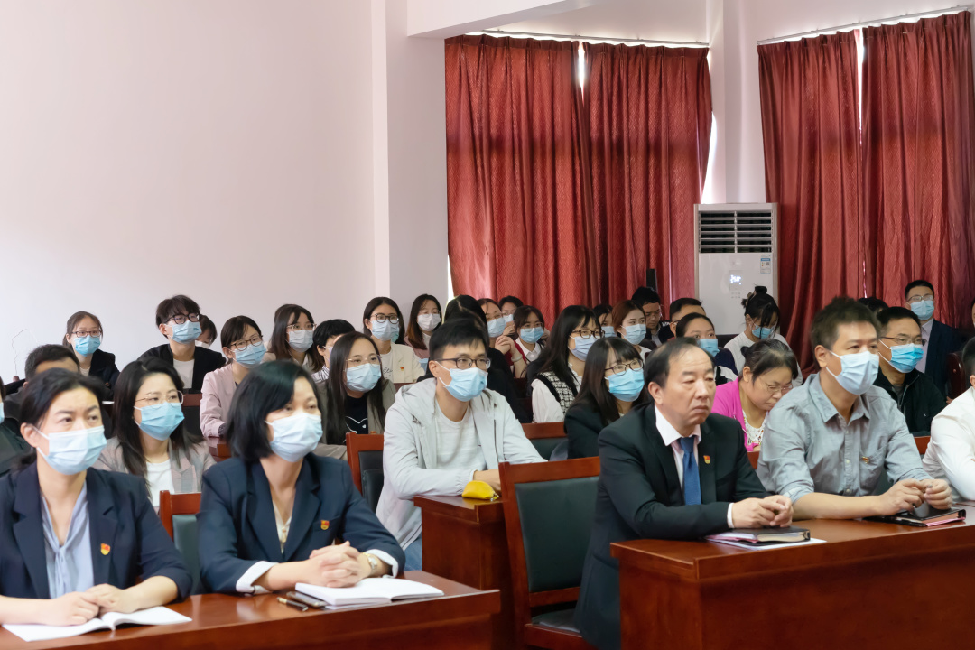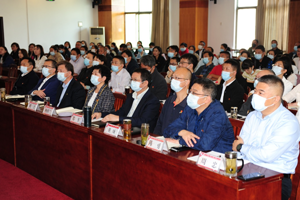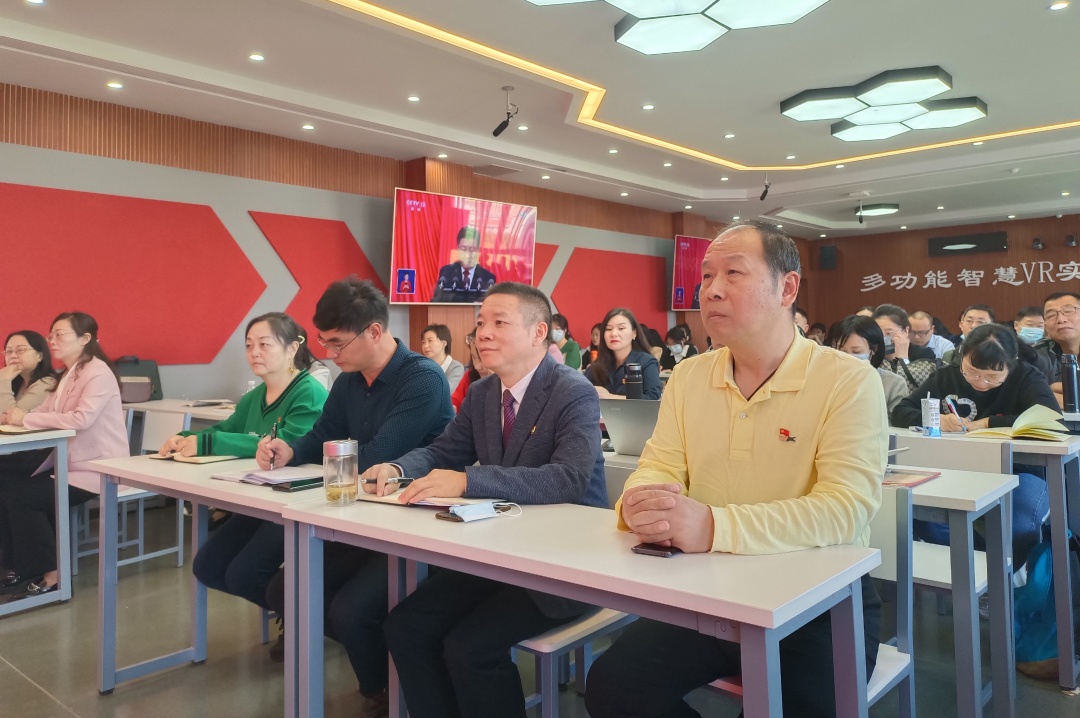 ▲ 全体校领导;机关党委所属党支部党员;党外人士代表在行政楼五号会议室收看大会直播