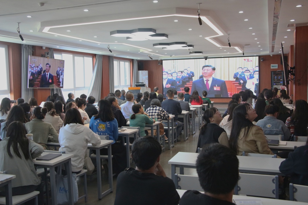 学校在5号会议室、报告厅、阶梯教室等场所设立直播收看点,各二级党组织、共管和直属单位、广大师生通过电视、电脑、广播、智能设备等各种形式收听收看大会直播。