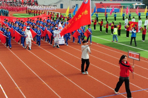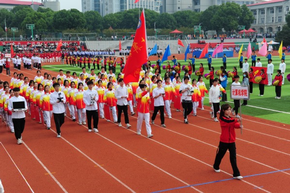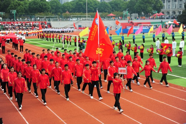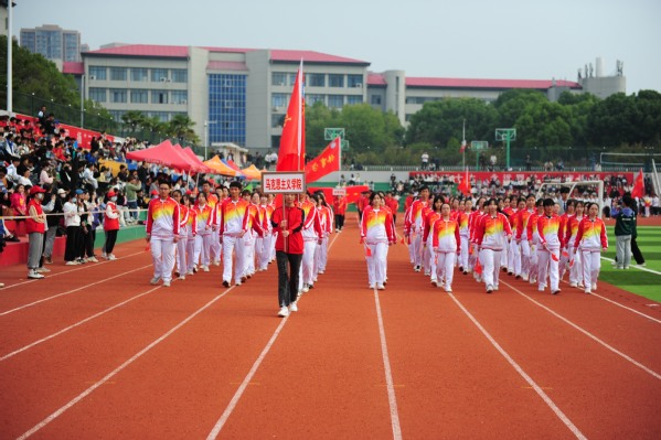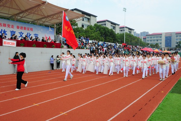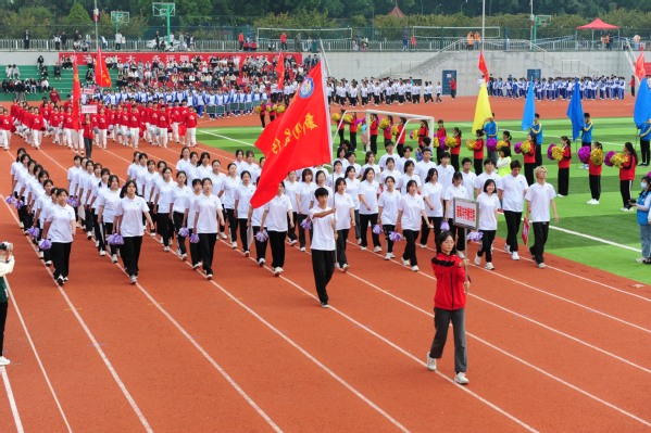 在激昂《运动员进行曲》中,国旗队、校旗队、校训仪仗队、彩旗队、鲜花队、裁判员代表队和13个学院方阵代表队依次入场。朝气蓬勃,神采飞扬,彰显了我校师生良好的精神风貌。