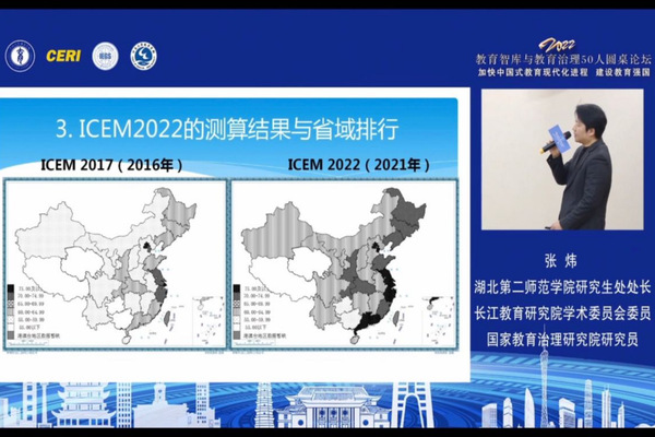 本网讯(通讯员 石晶)12月17日上午,我校学科建设办公室主任、研究生处处长张炜教授受邀参加“2022教育智库与教育治理50人圆桌”论坛,代表主办方长江教育研究院、国家教育治理研究院发布指数系列年度研究成果《中国教育现代化进程指数2022》。