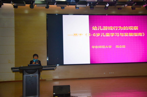 周念丽以《幼儿行为观察——基于<3-6岁儿童学习与发展指南>视角》为题,围绕“什么是幼儿行为”“如何识别幼儿行为”“解读幼儿行为的方法”等方面进行了深入阐述,并运用了大量的案例展示如何运用教育心理学的知识进行游戏观察。