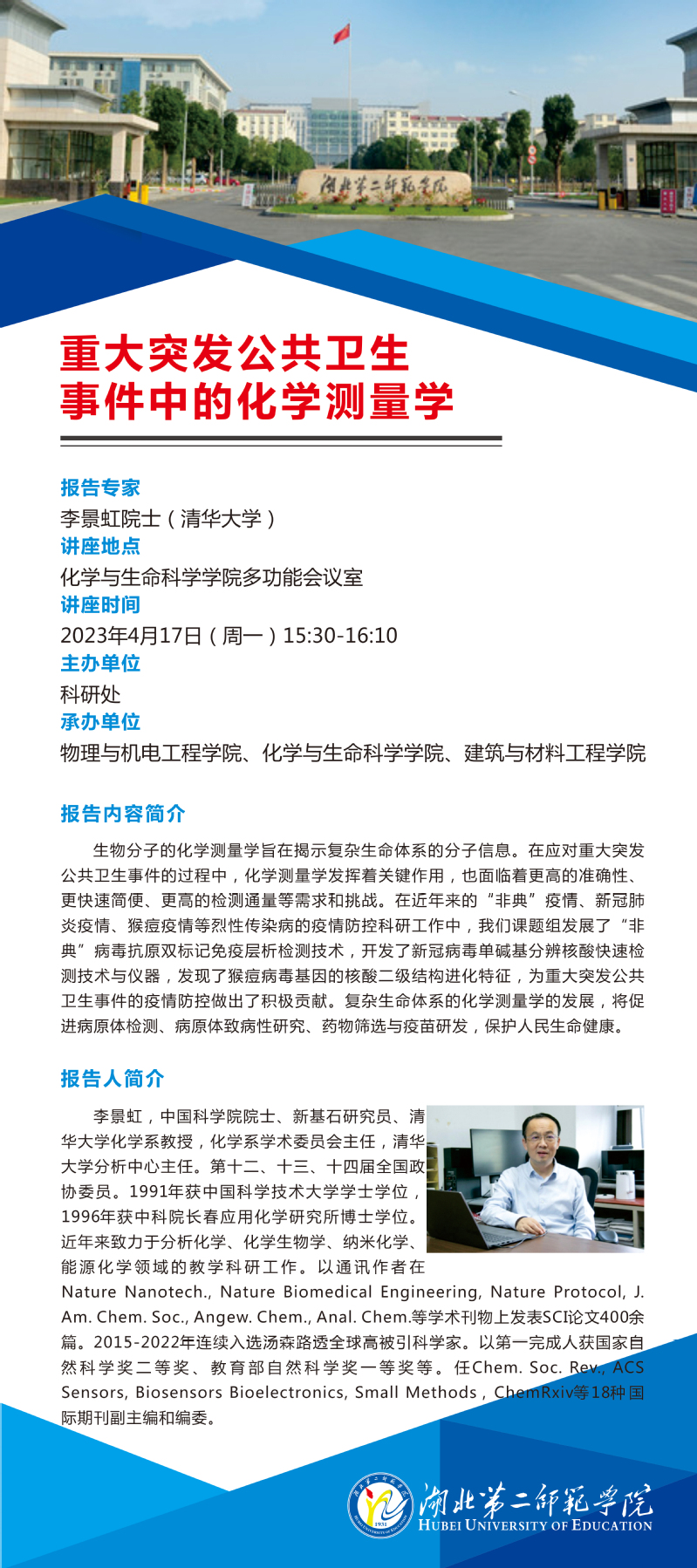 李景虹院士(清华大学) 《重大突发公共卫生事件中的化学测量学》报告