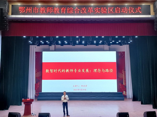 启动仪式结束后,举办了鄂州市基础教育强师行动论坛。教育部国培专家库专家刘永存教授以《数智时代教师的专业发展:理念与路径》为题、湖北省教育科学研究院张传萍博士以《区域教育科研的运行模式》为题分别进行了专题报告。