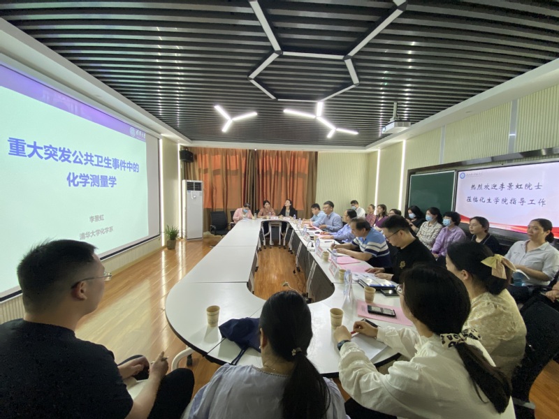 会上,李院士进行了关于“重大突发公共事件中的化学测量学”为主题的学术报告。介绍了课题组基于免疫层析检测技术及酶标抗体抗原方法,致力于开发能快速检测这些典型病毒碱基或核酸的新的靶标技术和方法,并积极研究病原体治病机制,取得了突破性成果,报告结束后,教师们与李院士进行了积极地互动交流。