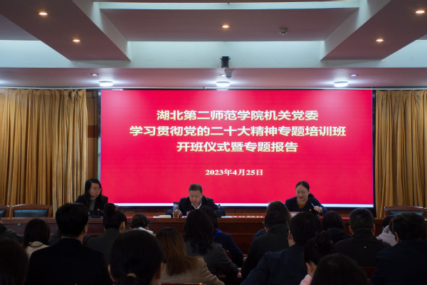 本网讯(学通社见习记者 黄晓程)4月25日下午,机关党委学习贯彻党的二十大精神专题培训班在行政楼五号会议室开班。校党委副书记胡兴作开班动员讲话,机关党委书记王青主持开班仪式。