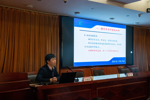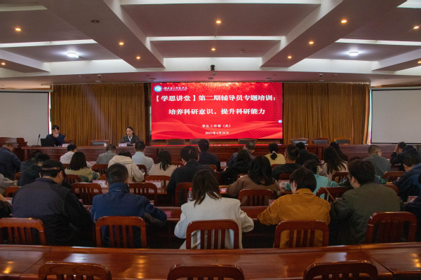 本网讯(学通社见习记者 谢朝冉 通讯员 金琰)4月26日下午,我校在行政楼五号会议室举行“学思讲堂”第二期辅导员专题培训,邀请了科研处副处长李海雄教授作《培养科研意识,提升科研能力》专题辅导,学工部副部长张敏主持会议。
