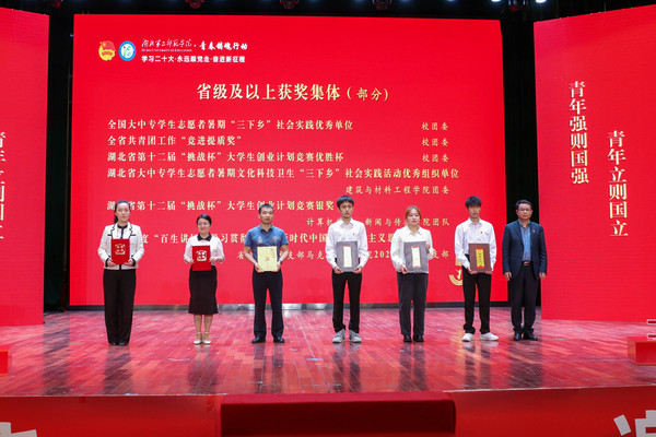 会上对“五四红旗团委”、“五四红旗团支部”、“优秀社团指导中心”、“暑期‘三下乡’社会实践活动优秀组织单位”、“青春榜样”年度人物、“优秀共青团员”、“优秀共青团干部”、“优秀学生会”等先进集体和个人进行了表彰。出席校领导为获奖代表颁奖。