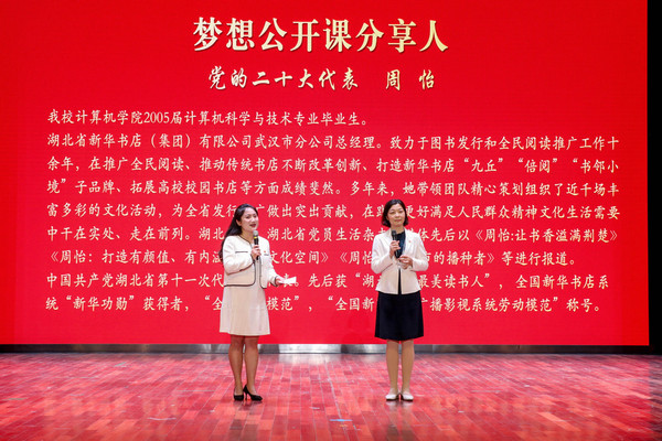 梦想公开课分享人、党的二十大代表、“青年校友好榜样”周怡号召学弟学妹们要以党的二十大精神为指引,不断求索新知,增长才干,敢于拼搏,勇于担当;“创新创业好榜样”、物理与机电工程学院杨凯分享了他“怀揣人生梦想来到二师学习、追梦”,到“怀揣感恩之心回到母校任教、圆梦”的奋斗历程;校团委兼职副书记、经济与管理学院席中刚以“在二师的青春合影”为题分享了他的青春故事;“志愿公益好榜样”、教育科学学院罗瑶向大家分享了二师学子奉献西部,用奋斗诠释最美青春的故事。