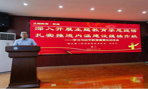 本网讯(通讯员周婷)5月18日下午,数学统计学院联合学校教务处、科研处、学科办、质评中心在实验楼S4210教室开展学习贯彻习近平新时代中国特色社会主义思想主题教育暨数学与统计学院2023年“优师计划”师范生首届读书文化节优师大讲堂活动,副校长夏力为师生作主题教育专题党课。
