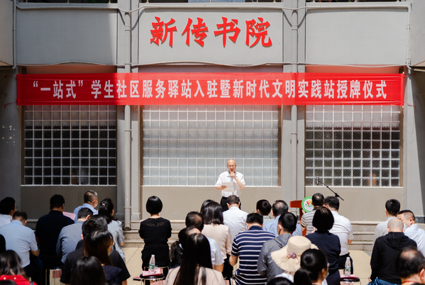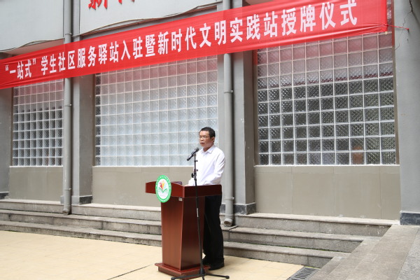 本网讯(通讯员 金琰 学通社见习记者 王智莉)5月25日上午,我校在学生宿舍中区五栋一楼(新传书院)举办“一站式”学生社区服务驿站入驻暨新时代文明实践站授牌仪式活动。校长郑军,党委常委、副校长陈勇,党委常委、宣传部部长周忠出席,活动由黄颂主持。
