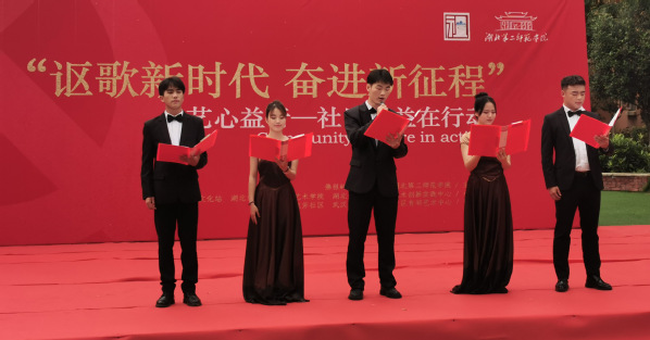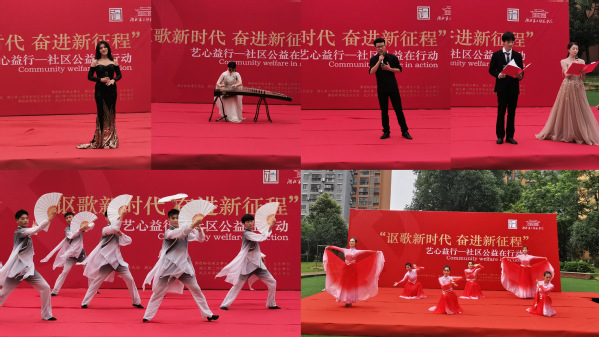 艺术学院创新实践中心的教师团队及学生文艺演出团队,通过朗诵、歌曲、舞蹈、乐器演奏等大家喜闻乐见的方式来解读党的二十大精神,把党的声音送到社区群众心坎上。