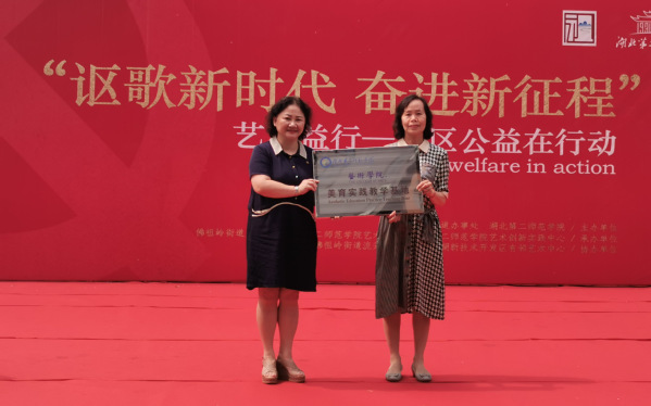 本网讯(通讯员 曹珊)6月25日下午,艺术学院携手武汉东湖新技术开发区佛祖岭街道流芳社区,共同举办了“讴歌新时代,奋进新征程——艺心益行社区公益在行动”党的二十大精神文艺宣讲公益活动暨“美育实践教学基地”揭牌仪式。