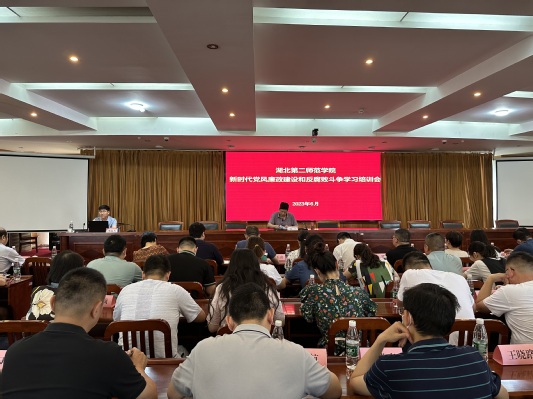 本网讯(通讯员 冯牧文)为深入开展主题教育和党风廉政建设宣传教育月工作,6月26日,中共湖北省委党校李敏杰副教授受邀到校作纪律教育专题培训,学校近两年新提拔、新入党年轻干部、新入职教师,以及专兼职纪检监察干部参加了培训,培训会由纪委书记刘昕主持。