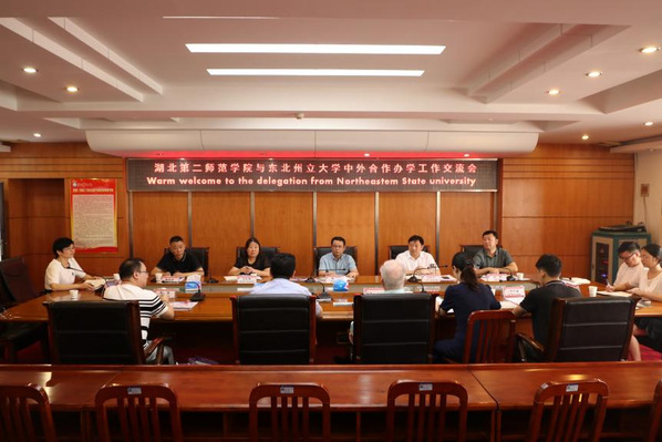Mr. Xuan Li对我校的热情接待表示感谢。他表示,东北州立大学十分重视与我校的教育交流合作,欢迎暑期和秋季学期即将赴美学习交流的教师和学生。东北州立大学愿意与我校进一步扩大合作领域,共同迎接世界高等教育的机遇与挑战。