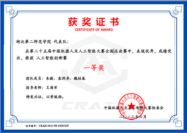 本网讯(通讯员 曹晓明) 近日,第25届中国机器人及人工智能大赛全国总决赛成绩公布,计算机学院学生荣获国家级一等奖1项。