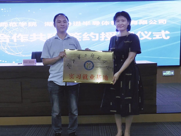 会上,学校相关部门代表分别与东宝区人民政府、东宝区教育局、共青团东宝区委签订校政战略合作、校校合作共建和暑期“三下乡”社会实践活动基地共建协议,与湖北协进半导体科技有限公司、海太欧林集团华中有限公司、湖北萨莱玛建筑科技有限公司3家企业签订校企合作共建实习实训创业就业基地协议并为企业授予实习就业基地牌匾。同时,江稳为我校授予“东宝区招才引智工作站”牌匾。