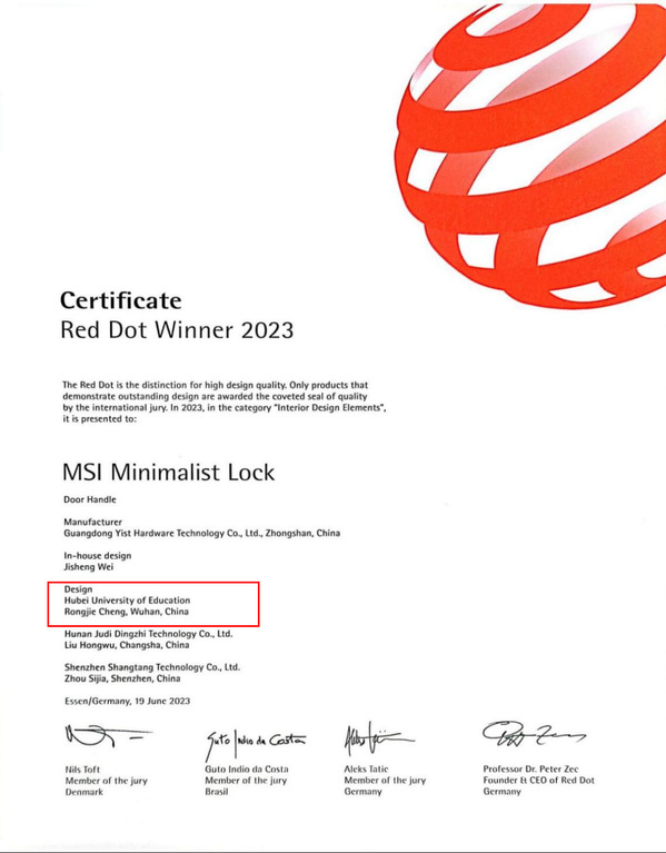 本网讯(通讯员 陈思)近日,德国红点奖2023年度获奖名单正式揭晓,湖北第二师范学院艺术学院视觉传达设计系程蓉洁副教授与企业合作设计选送的作品《极简锁》,获2023年国际顶级设计大奖德国红点设计奖。
