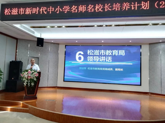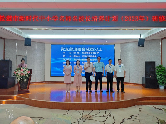 本网讯(通讯员 刘大炜 李澳)9月18日上午,松滋市新时代中小学名师名校长培养计划(2023年)研修班开班仪式在武汉举行。湖北省普通教育干部培训中心副主任刘期锡,松滋市教育局党组成员、副局长熊运军以及研修班全体学员参加。研修班学员松滋市八宝小学书记、校长江艳和划子嘴小学书记、校长胡雄主持开班典礼。