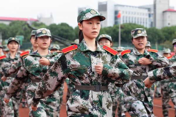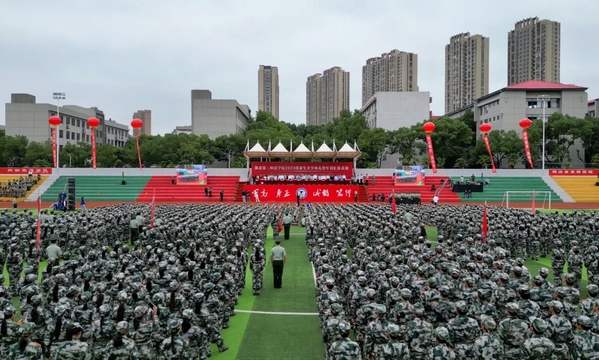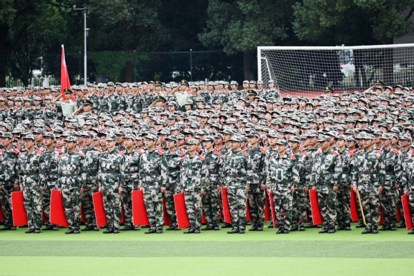 开学典礼在庄严的国歌声中拉开序幕。杨鲜兰下达军训汇报表演开始指令。2023级新生各军训方阵迈着矫健有力的步伐,喊着激情澎湃的口号,依次通过主席台,接受检阅。