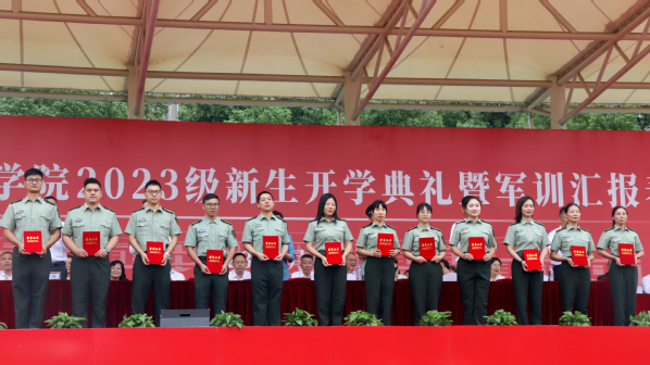 汇报表演结束后,工作人员宣读了《关于表彰2023年军训先进集体和先进个人的决定》,校领导分别为获奖集体及个人颁发“军训标兵”“军训优秀指导员”“军训优秀教官”“军训先进集体”等奖项。